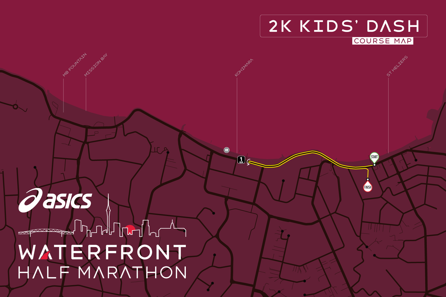 The course starts on Tamaki Drive in the centre of St Heliers, near the junction with Goldie St and only a few metres from the main event venue and finish line. Get ready for maximum excitement as the gun goes and the adults go MENTAL cheering you on!