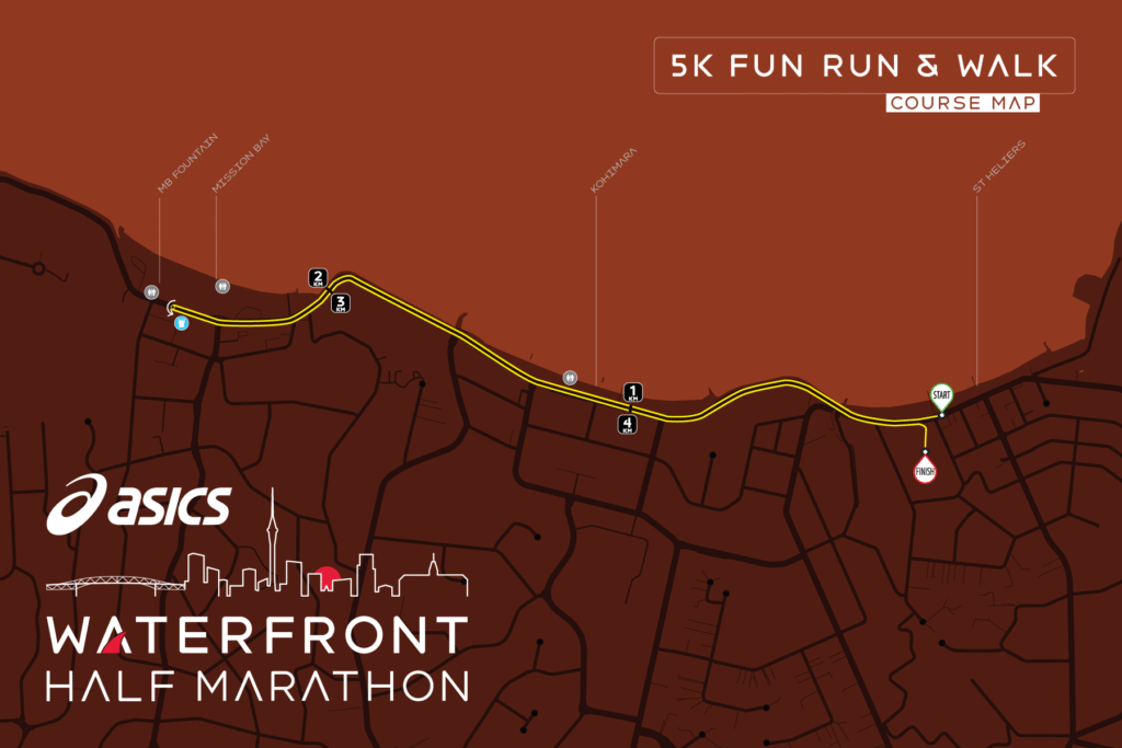 The 5k course at the Waterfront Half Marathon is a perfectly flat, stunningly scenic out-and-back blast along Tamaki Drive. Here is how it fits together …